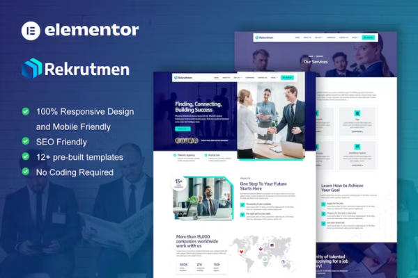 人力资源和招聘机构 Elementor 外贸网站模板Availability: 232 in stock