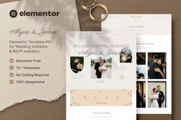 婚礼邀请和 RSVP Elementor 外贸网站模板Availability: 284 in stock