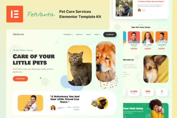 宠物护理服务 Elementor 外贸网站模板Availability: 255 in stock