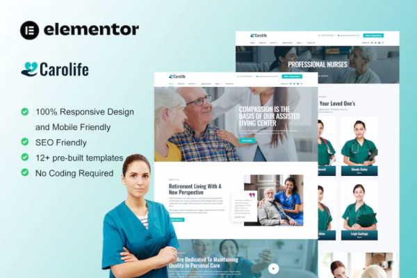 家庭护理和私人护理服务 Elementor 外贸网站模板Availability: 174 in stock