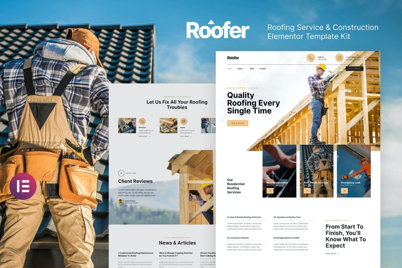 屋面服务和施工 Elementor 外贸网站模板Availability: 85 in stock