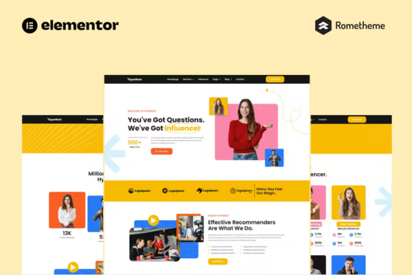 影响者营销机构 Elementor Pro 完整站点外贸网站模板Availability: 93 in stock