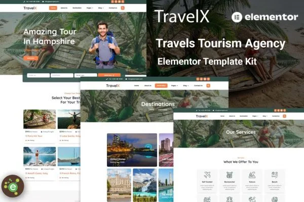 旅游旅行酒店预订WordPress带后台网站模板 Elementor Template KitAvailability: 138 in stock