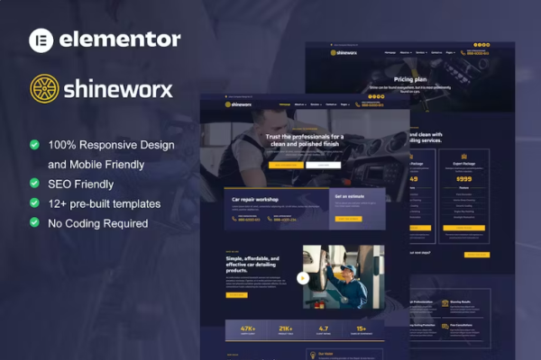 汽车细节服务和汽车维修Elementor专业外贸网站模板Availability: 72 in stock