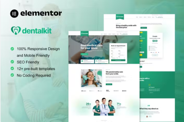 牙医和医疗服务 Elementor 外贸网站模板Availability: 154 in stock
