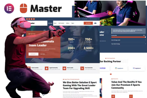 电子竞技团队和游戏社区 Elementor 外贸网站模板Availability: 107 in stock