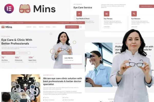 眼科诊所网站模板视力矫正眼镜店Elementor 外贸网站模板Availability: 273 in stock