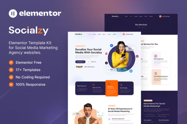 社交媒体营销机构 Elementor 外贸网站模板Availability: 272 in stock