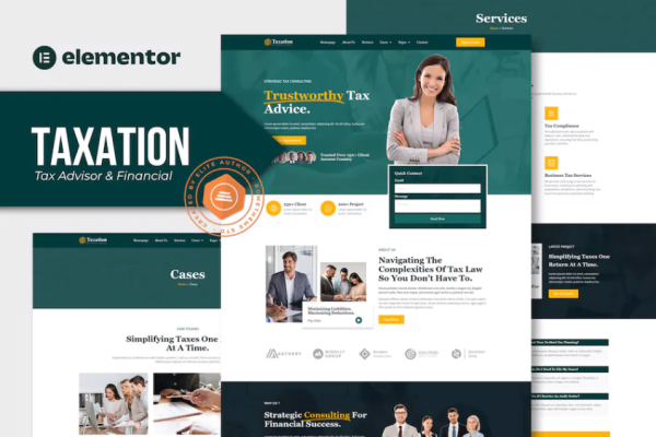 税务顾问和财务咨询 Elementor Pro 外贸网站模板Availability: 288 in stock