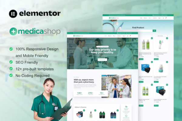 药房和医疗商店 Elementor 外贸网站模板Availability: 144 in stock