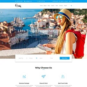蓝色旅行社组团旅游公司静态HTML网站Bootstrap模板Availability: 100 in stock