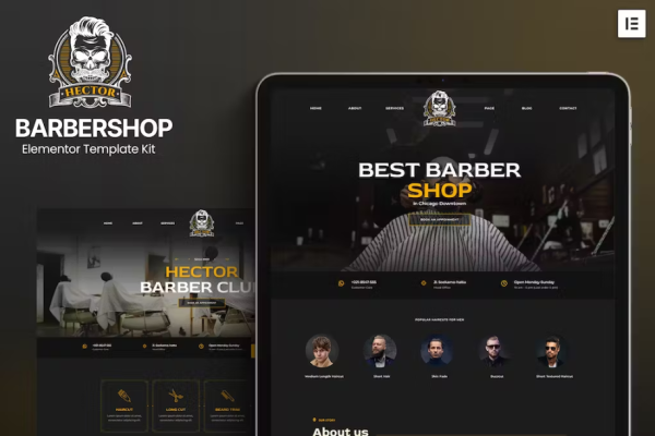 Barbershop Elementor 外贸网站模板Availability: 287 in stock