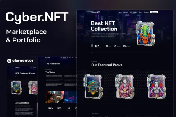 Cyber.NFT 市场和投资组合 Elementor 模板工具包Availability: 240 in stock