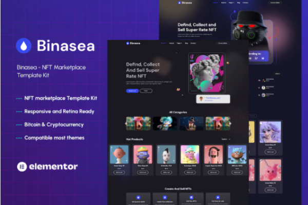 NFT 市场 Elementor 外贸网站模板Availability: 192 in stock