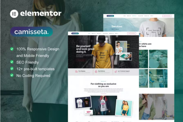 T 恤设计和印刷服务 Elementor Pro 外贸网站模板Availability: 88 in stock